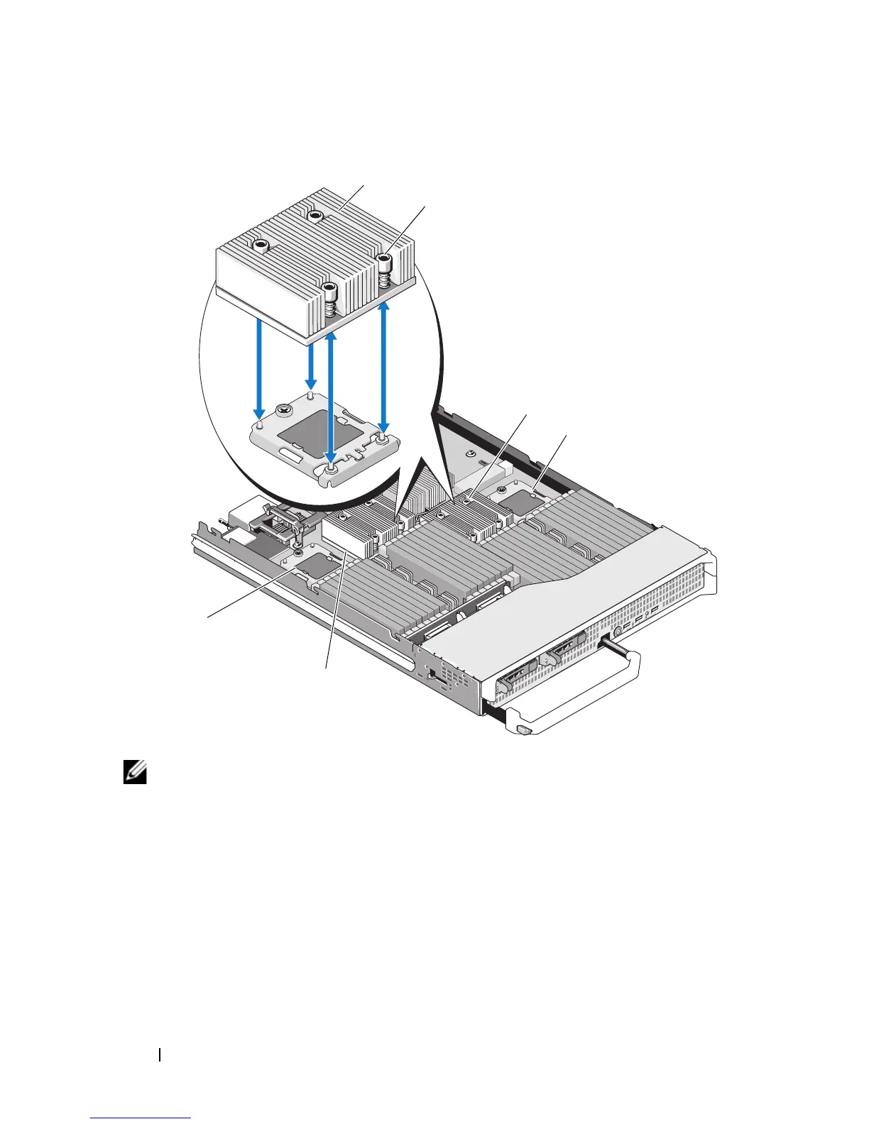NOTE: The above illustration shows the 130 W heat sink. The 95 W / 105 W heat