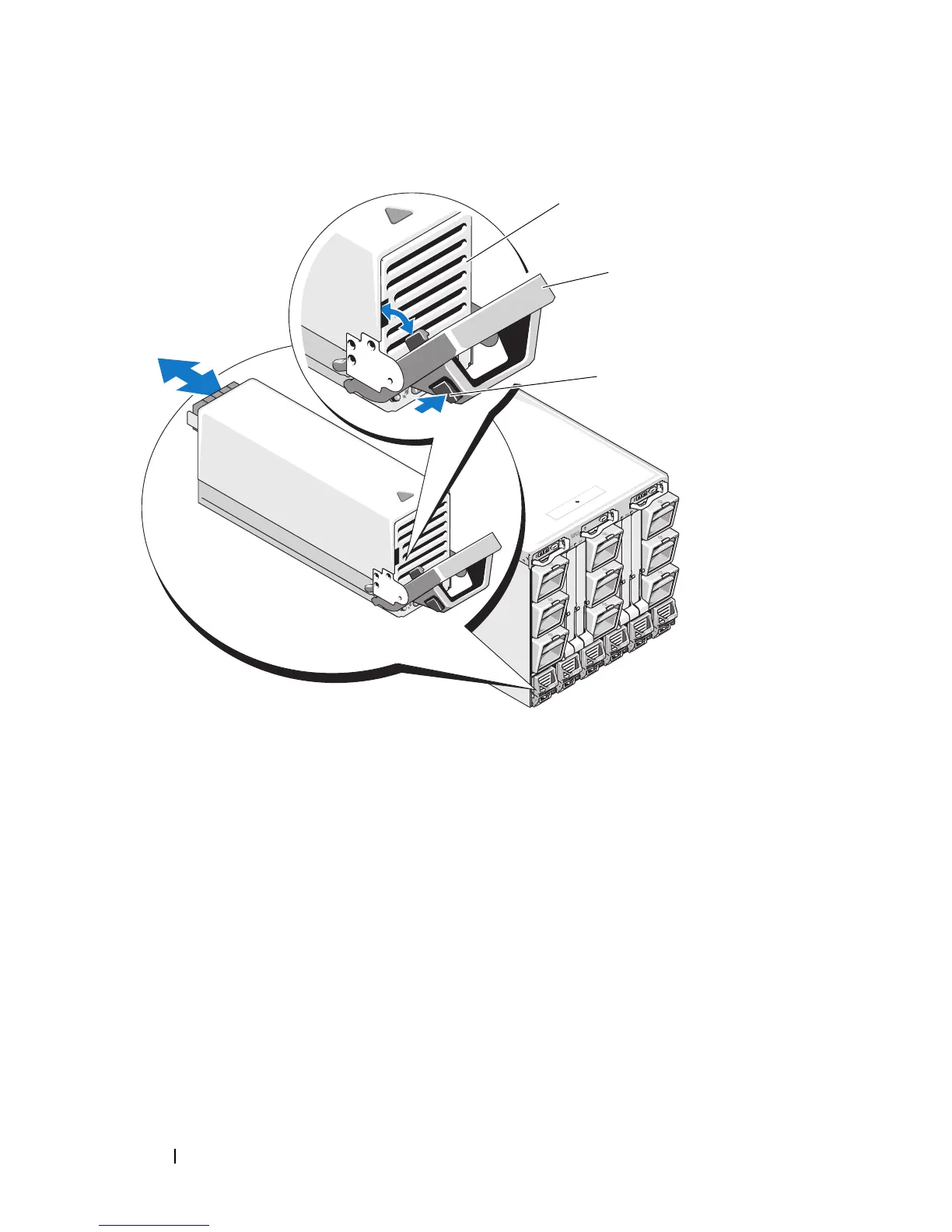 Rotate the power supply module handle down to eject the power supply
