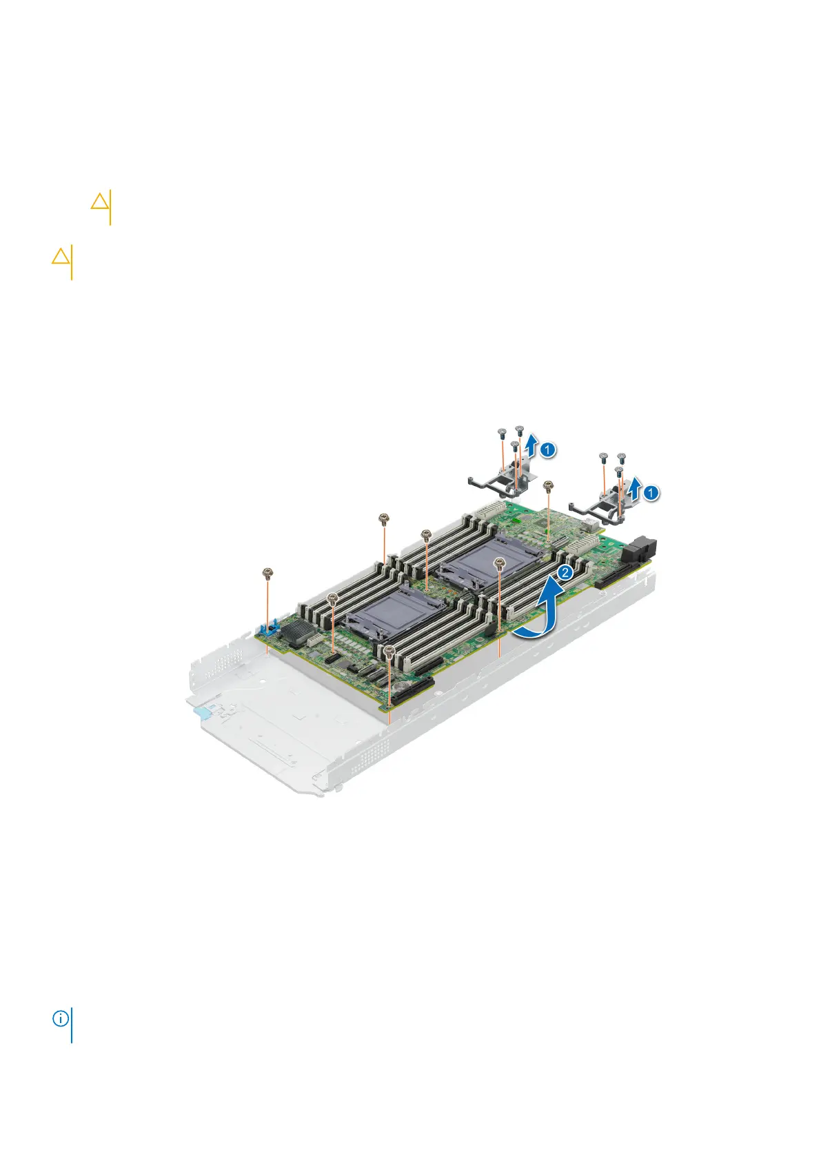 1. Using the Phillips #2 screwdriver, remove the screws that secure the Mezz card brackets to the system board.