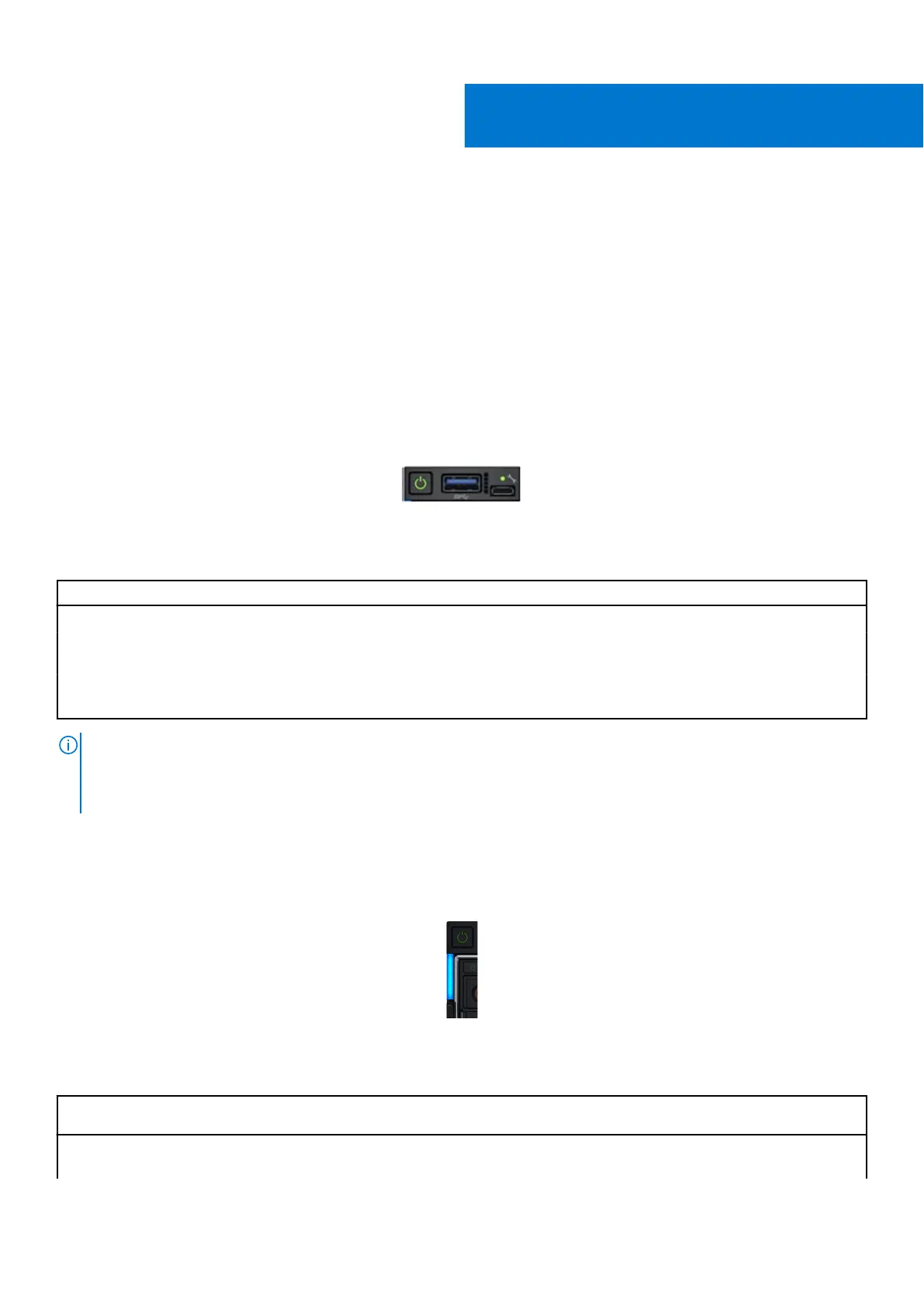 Solid blue Indicates that the system is powered on, is healthy, and system ID mode is not active. Press
