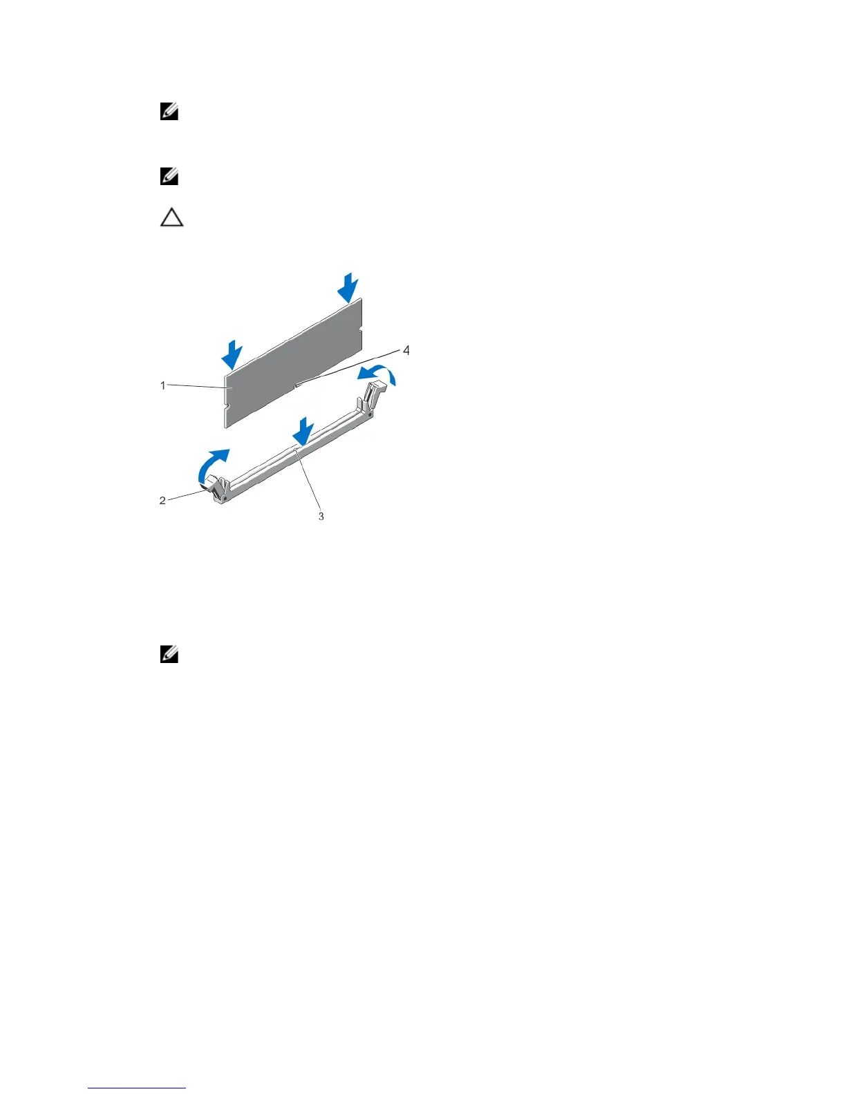 NOTE: When the memory module is properly seated in the socket, the levers on the memory-module socket
