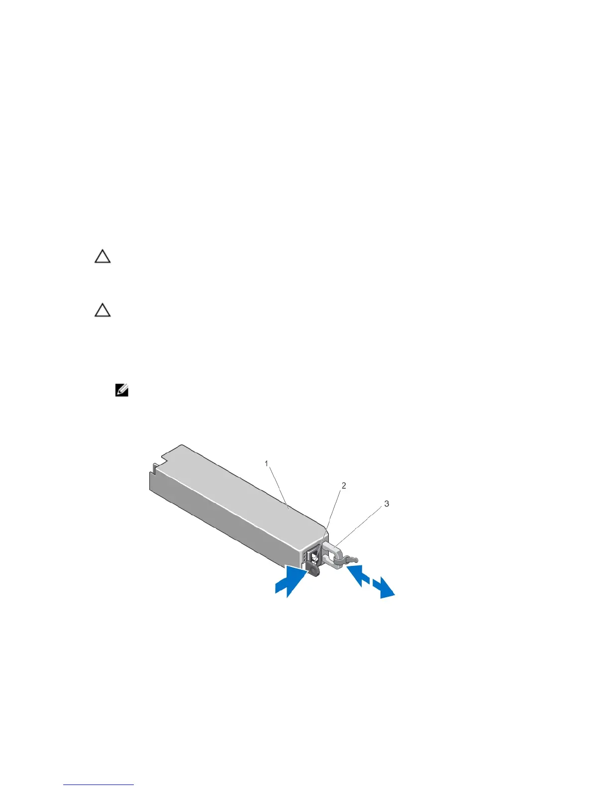 CAUTION: The system requires one power supply for normal operation. On power-redundant systems, remove and