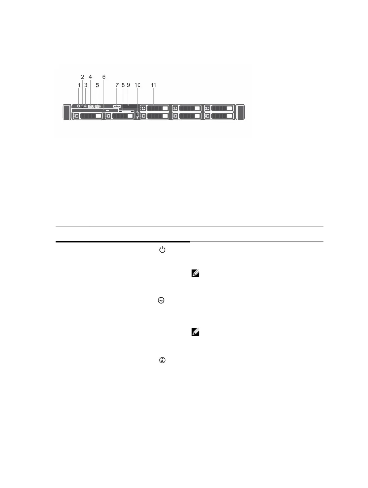 Table 3. Front panel features of a 8 x 2.5 inch hard drives or SSDs system