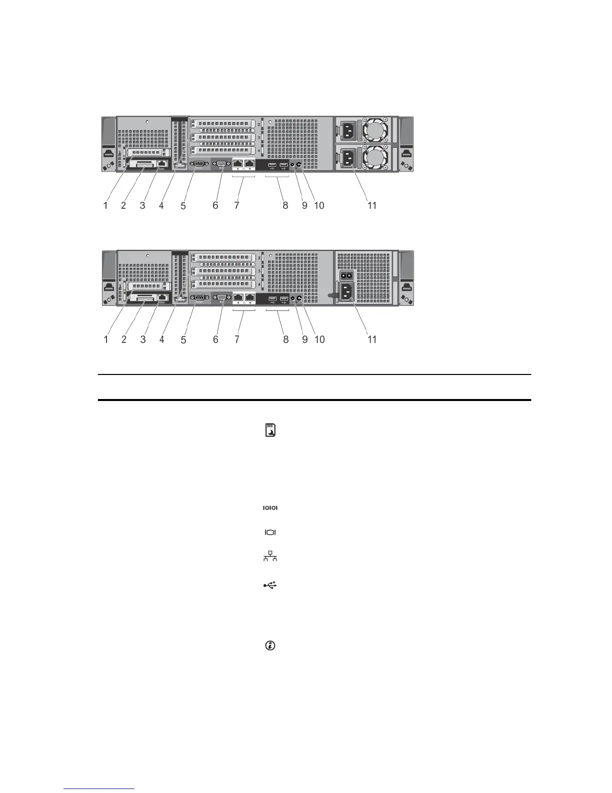 3 iDRAC port (Optional) Dedicated management port for the iDRAC Ports Card.