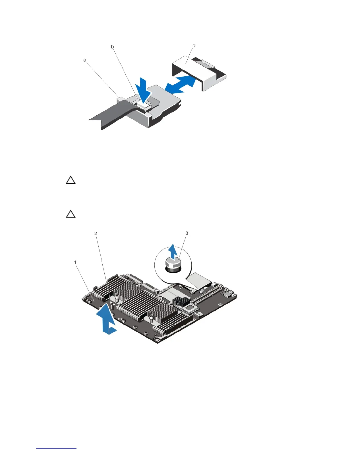 CAUTION: Do not lift the system board assembly by grasping a memory module, processor, or other