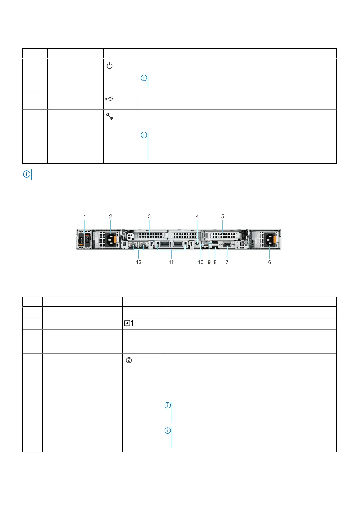 1 Power button Indicates if the system is powered on or off. Press the power button to