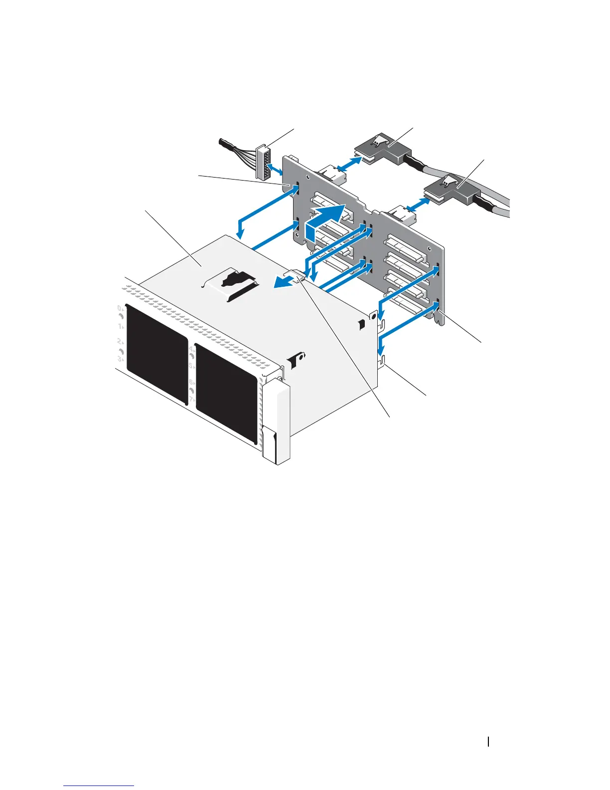 7 securing tabs (7) 8 SAS backplane board release tab