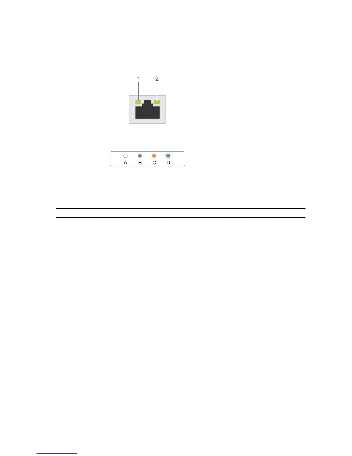 Link indicator is amber The NIC is connected to a valid network at less
