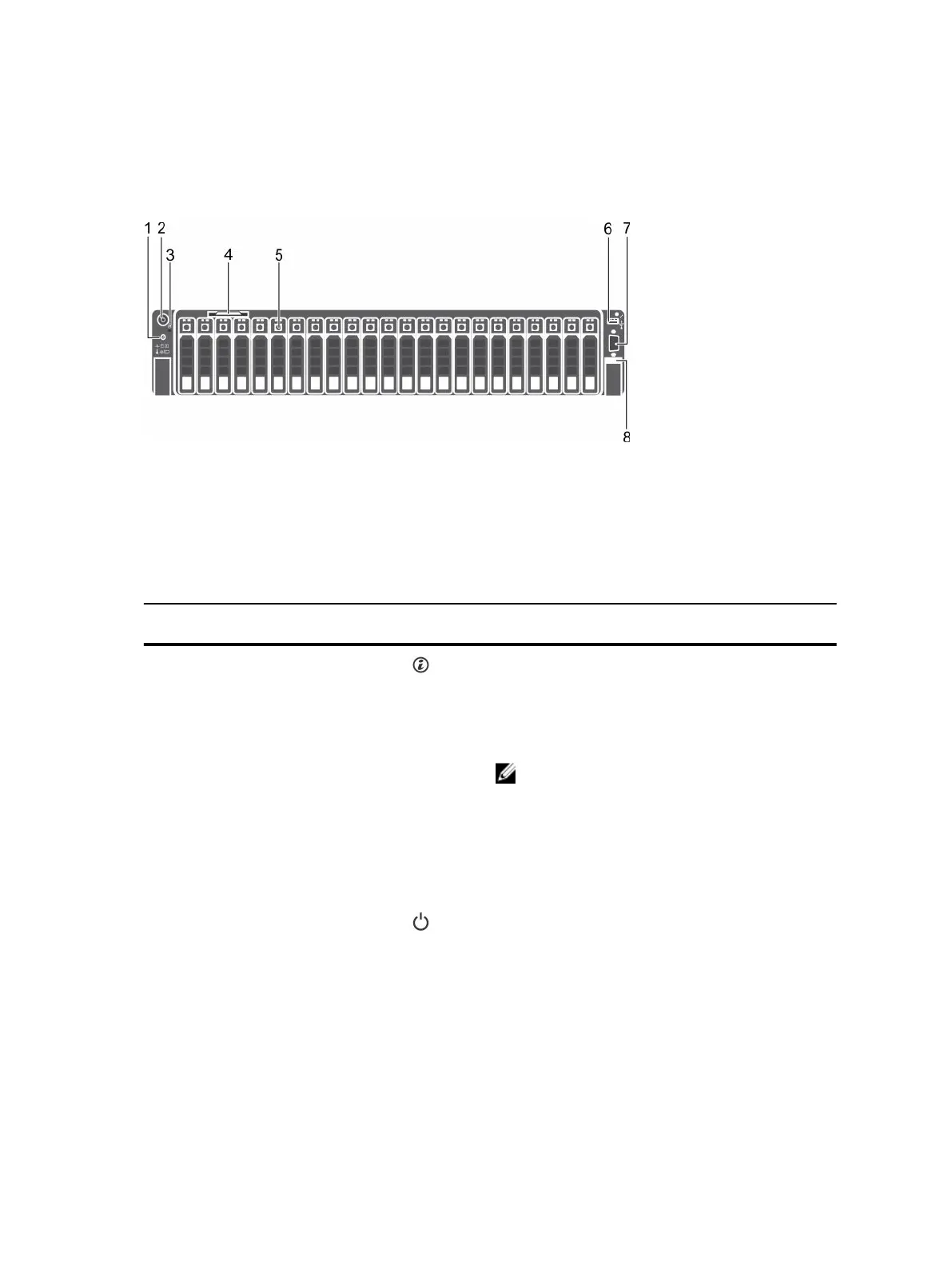 Table 1. Front panel of the 24 x 2.5-inch hard drive/SSD PowerEdge R730xd chassis
