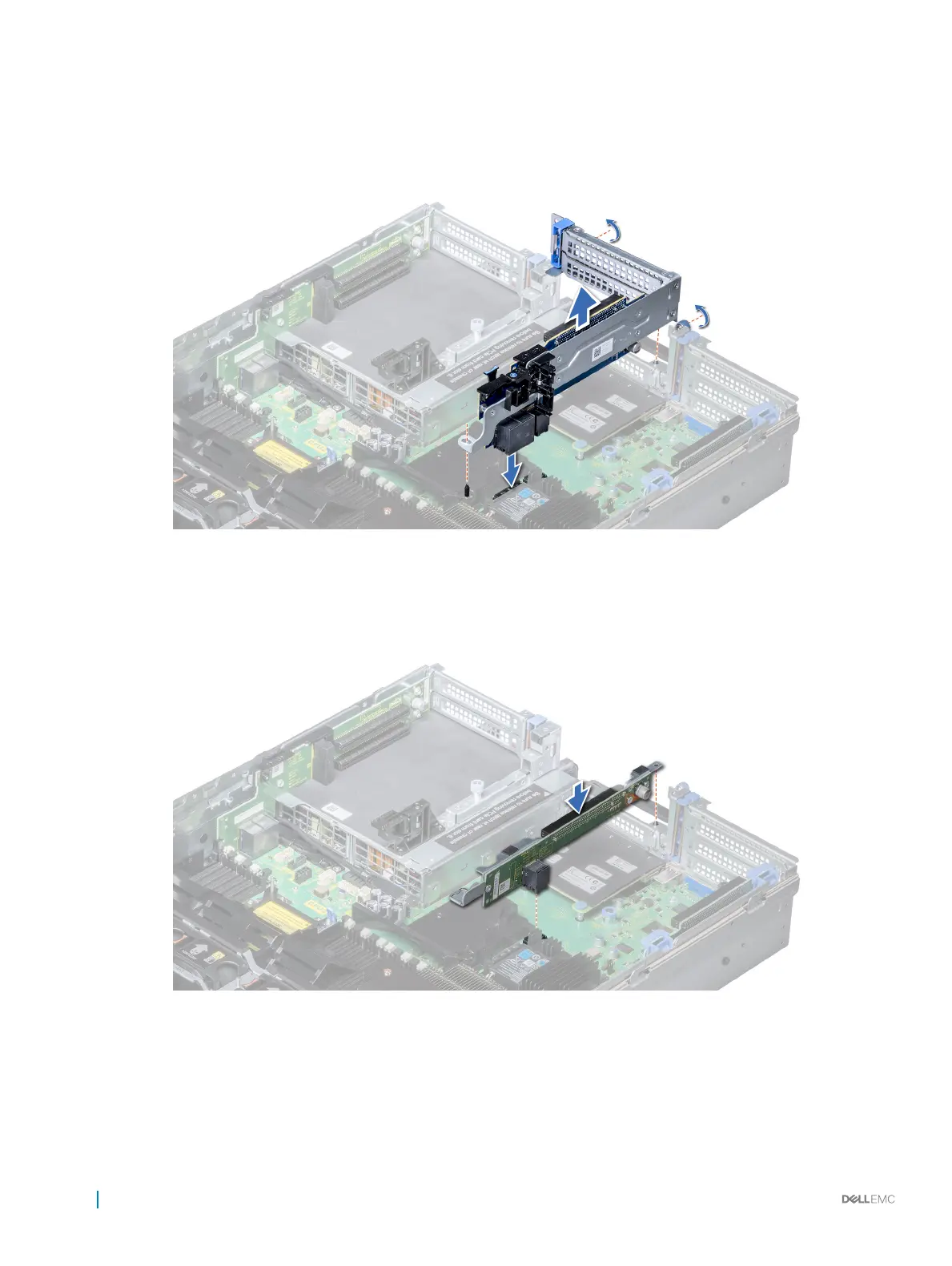 2 If removed, install the expansion cards into the riser.