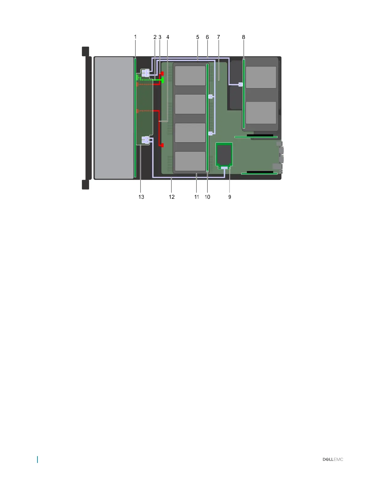 Figure 132. Cable routing – 24 x 2.5 inch drive backplane with 4 x 3.5 (with 4 x 2.5 adapter) mid drive tray and 4 x 2.5 rear drive cage
