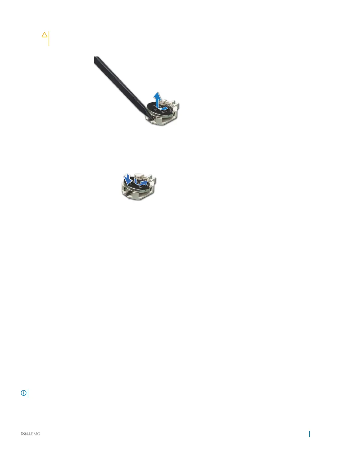 2 Use a plastic scribe to pry out the system battery as shown in the following illustration: