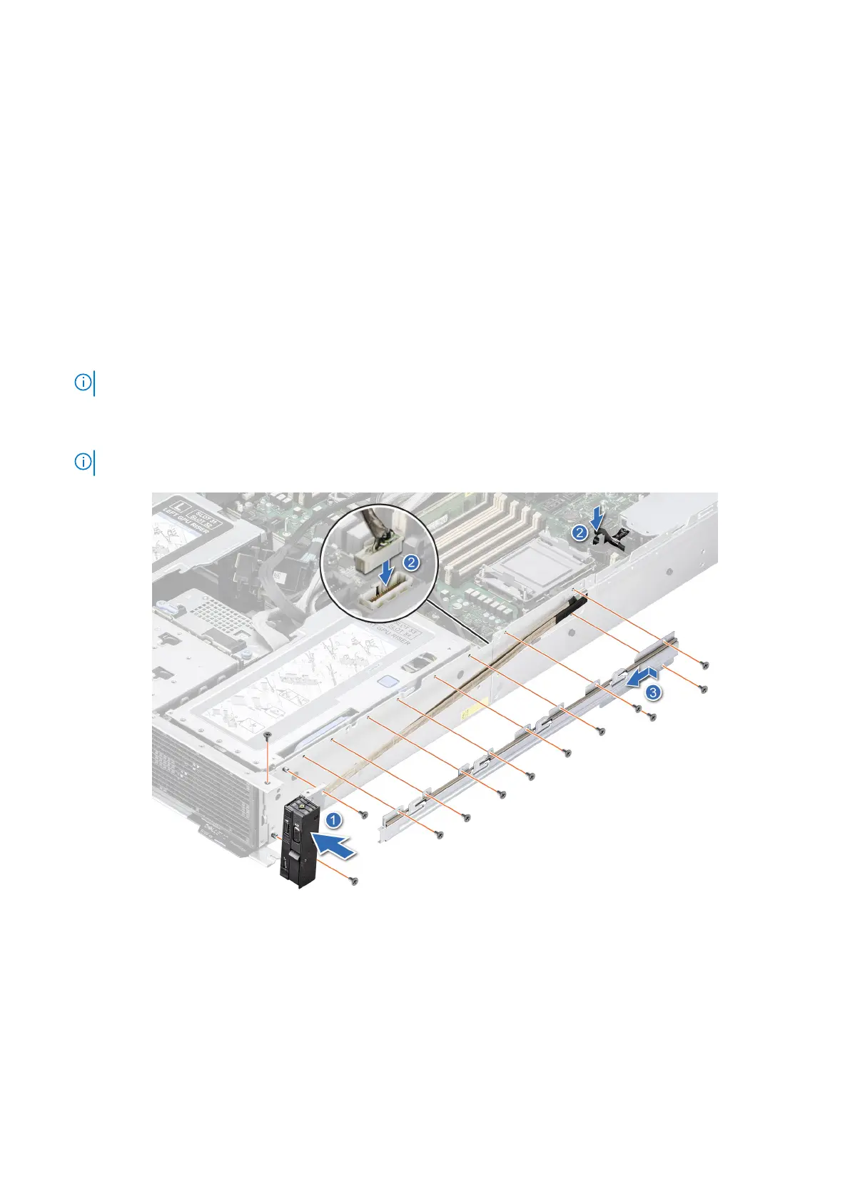3. Align and slide the right control panel cable cover in the slot on the system.