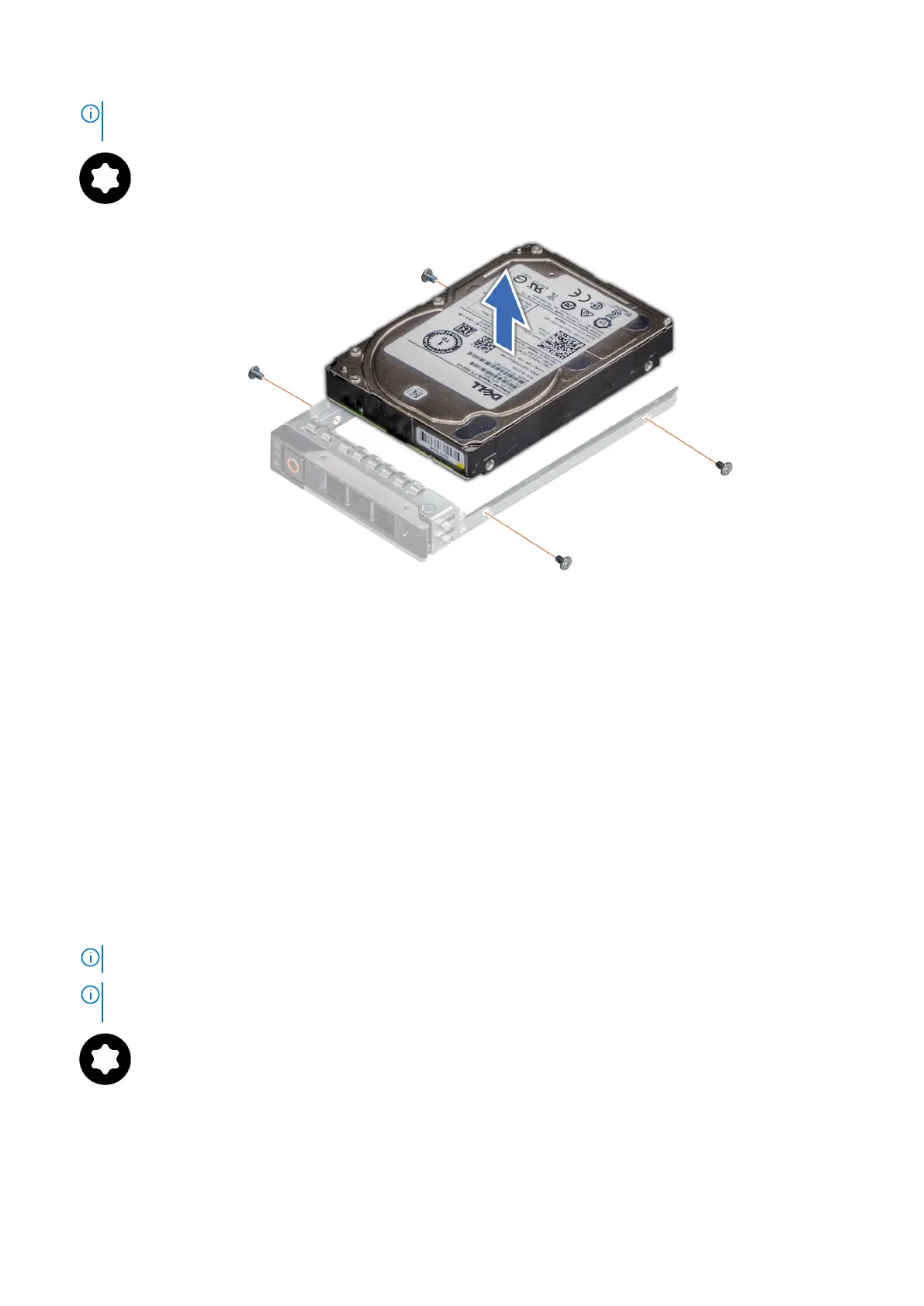 NOTE: If the drive carrier has Torx screw, use Torx 6 (for 2.5-inch drive) or Torx 8 (for 3.5-inch drive) screwdriver to