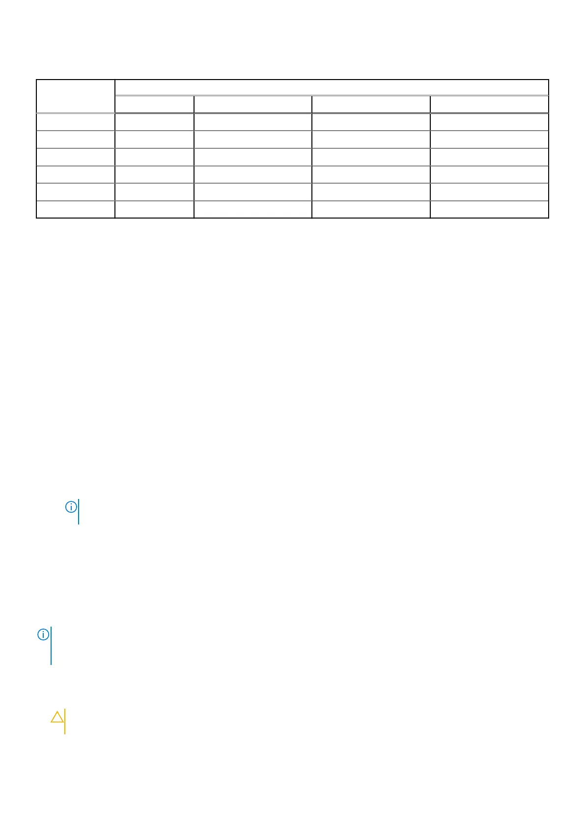 ● UEFI0391 message may be displayed during boot if DIMMs are configured in the blank spaces of the table.