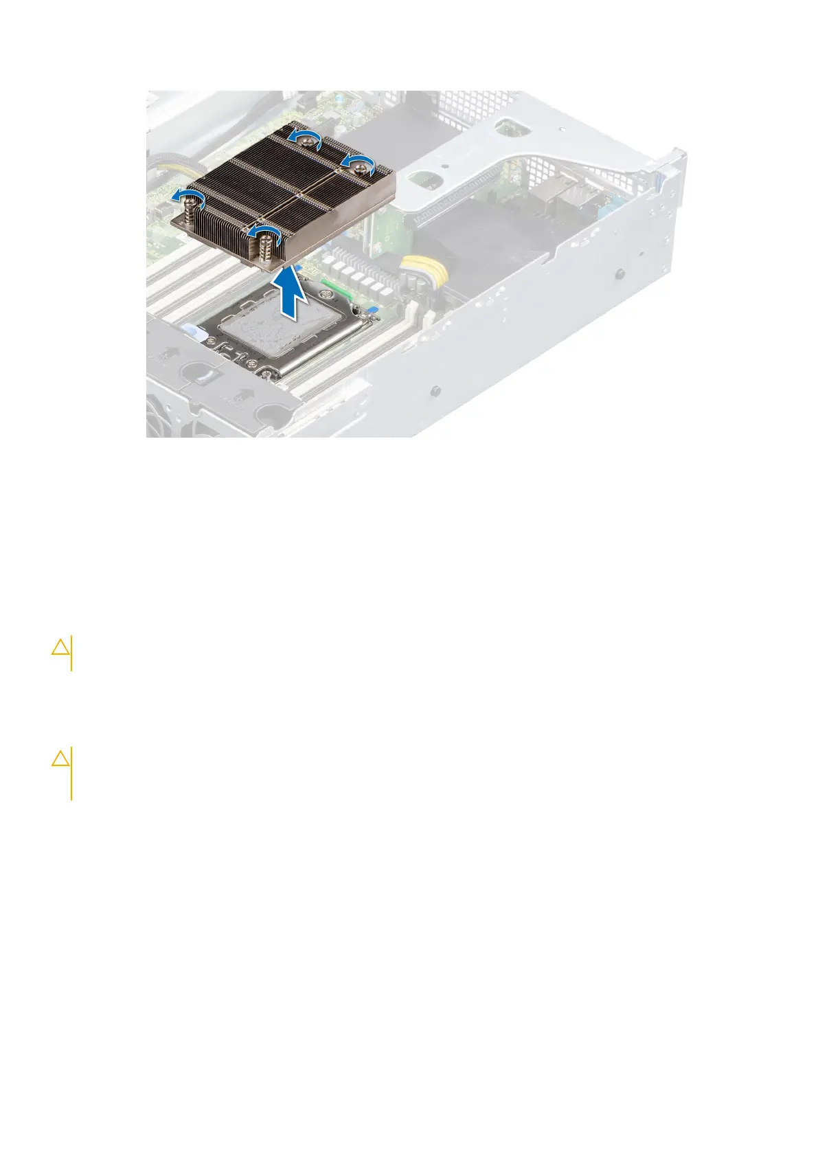 The heat sink may be hot to touch for some time after the system has been powered off. Allow the