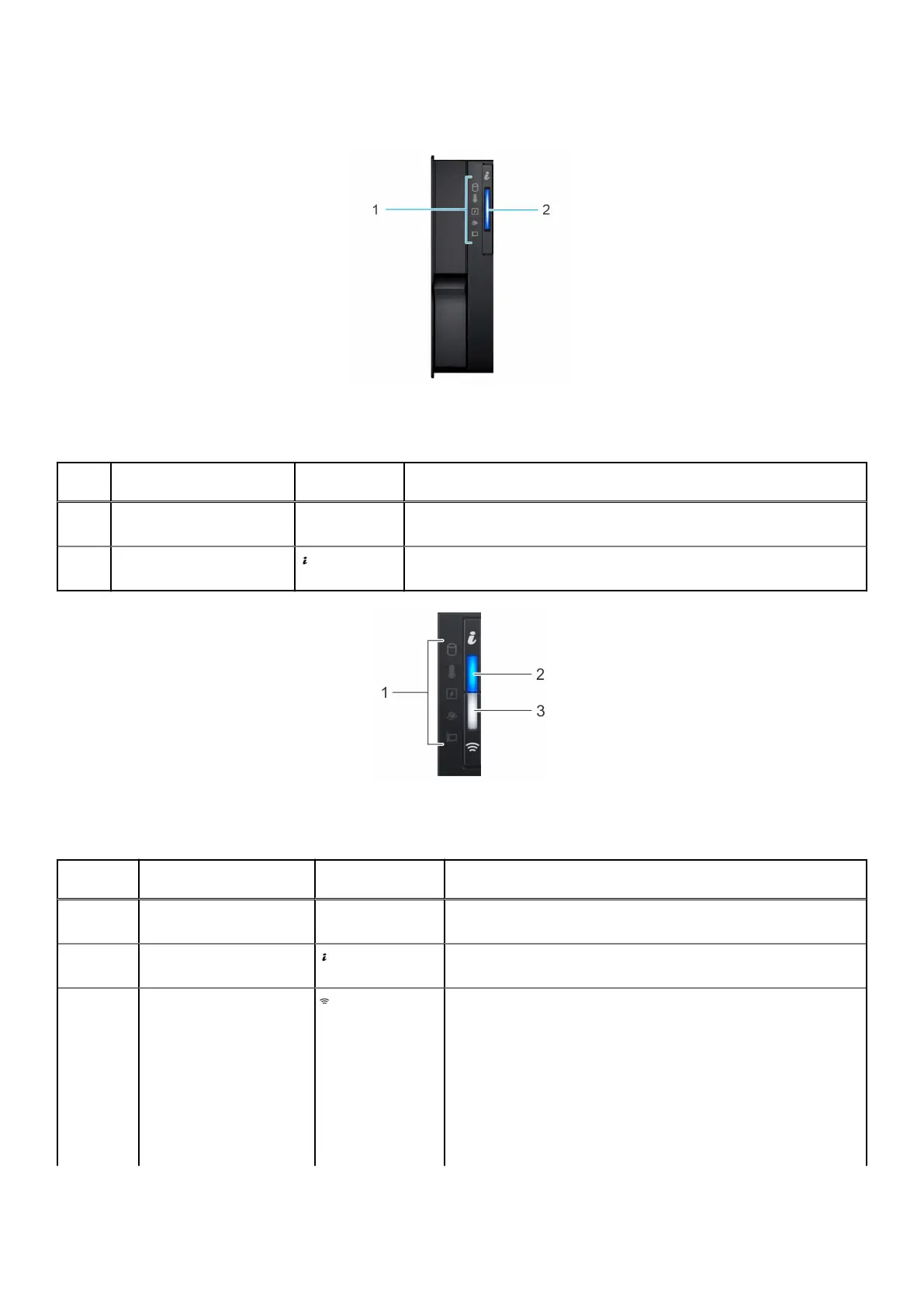 1 Status LED indicators N/A Indicates the status of the system. For more information, see the