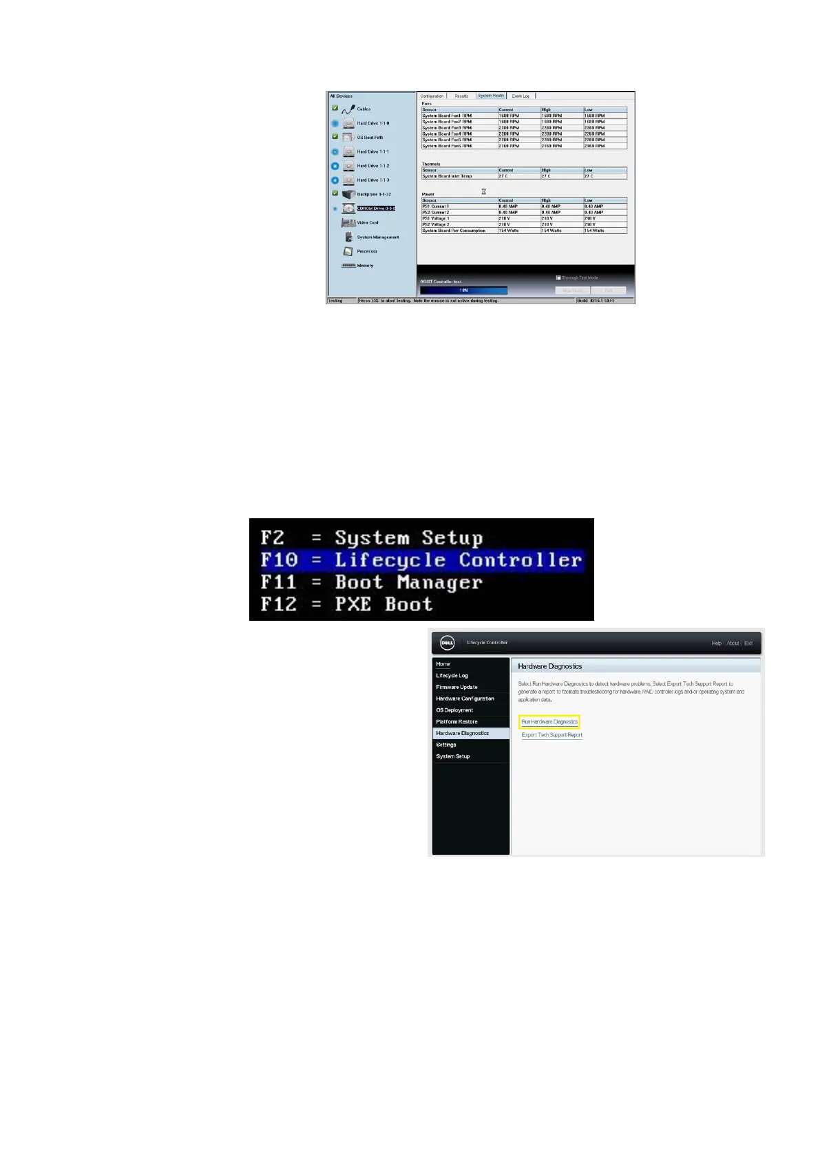 To run the embedded system diagnostics from the Dell Lifecycle Controller: