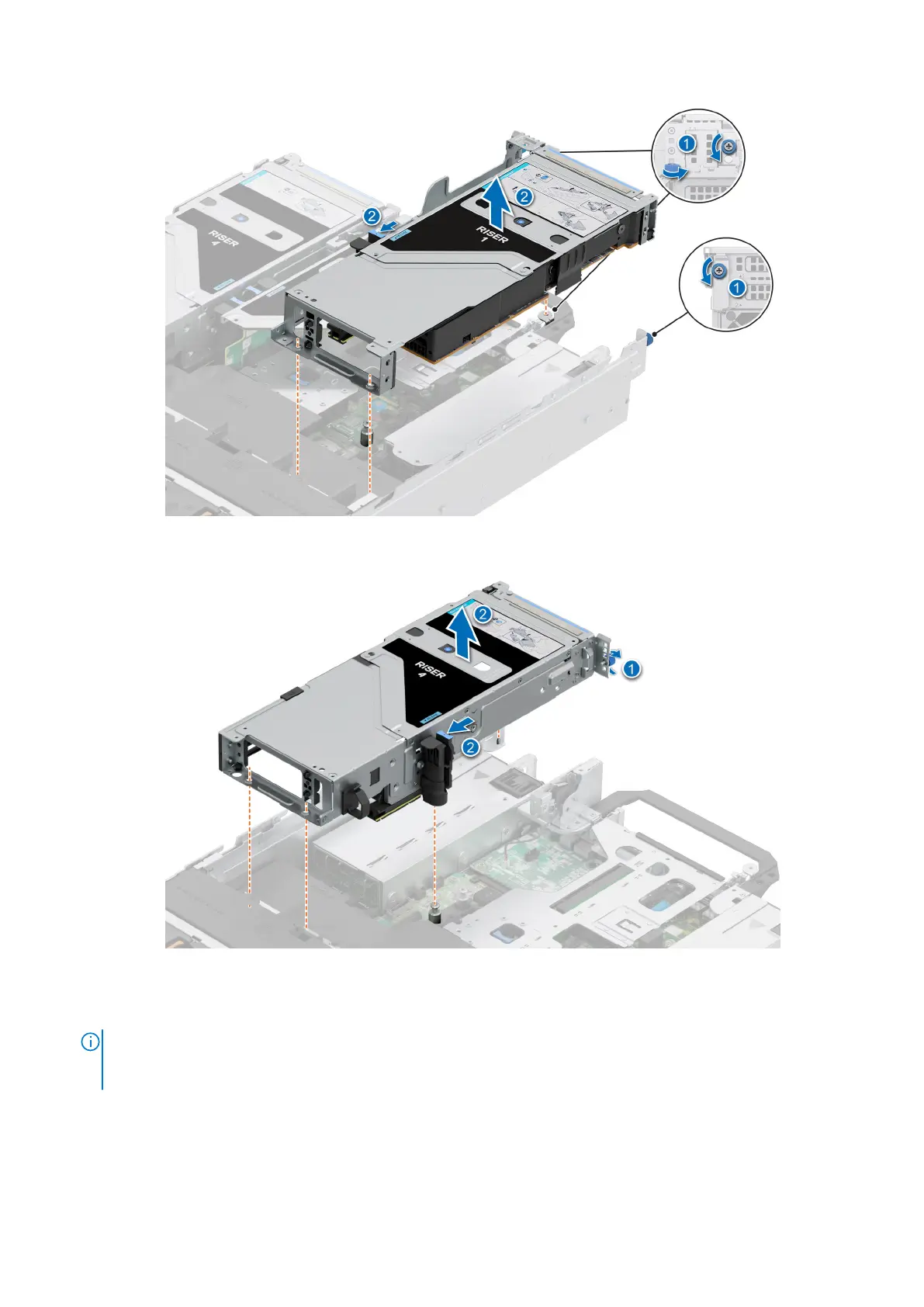 2. If the risers are not going to be replaced, install riser blanks and tighten the captive screws.
