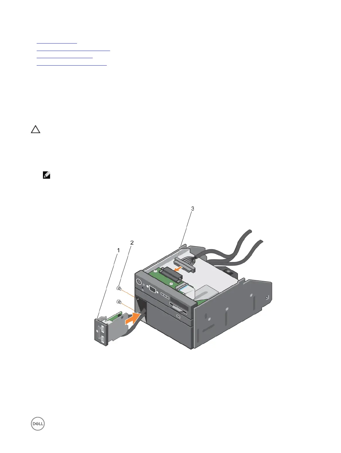 b. Install the screws to attach the vFlash connector/USB connector module to the control panel.