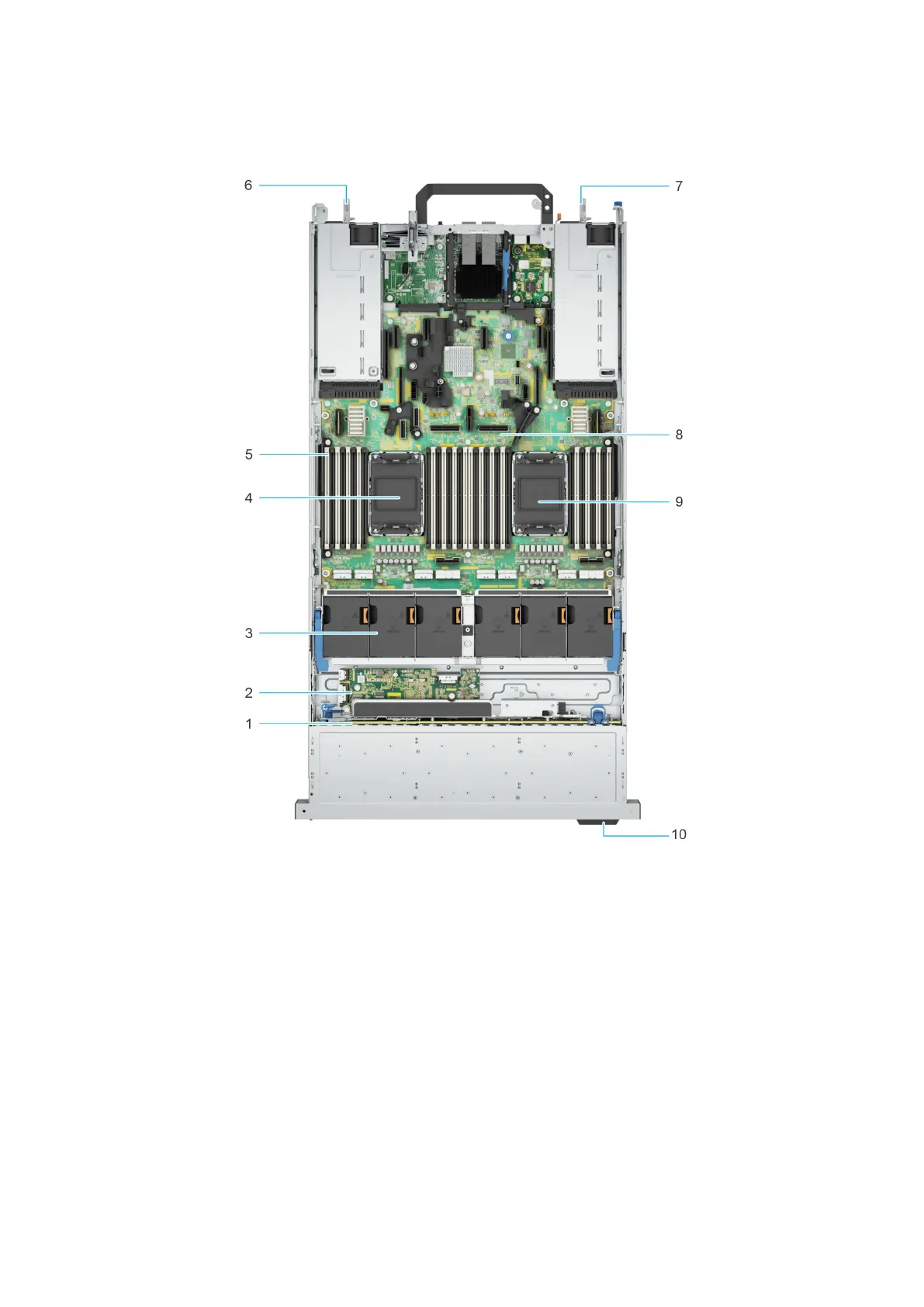 5. Memory DIMM sockets 6. Power supply unit (PSU2)