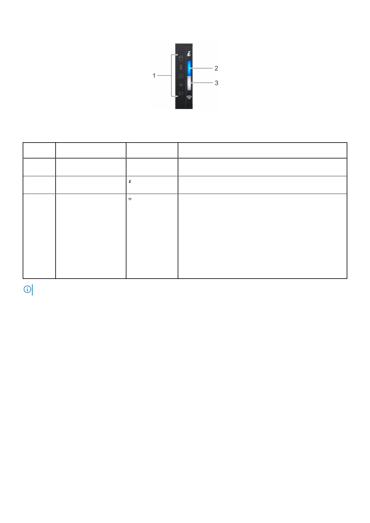 1 Status LED indicators N/A Indicates the status of the system. For more information, see the