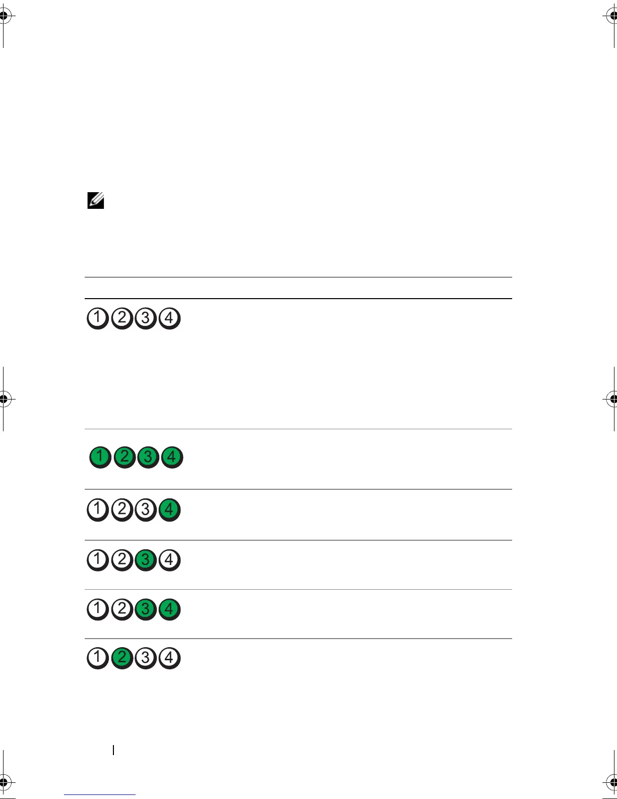 The four diagnostic indicator lights on the system front panel display error