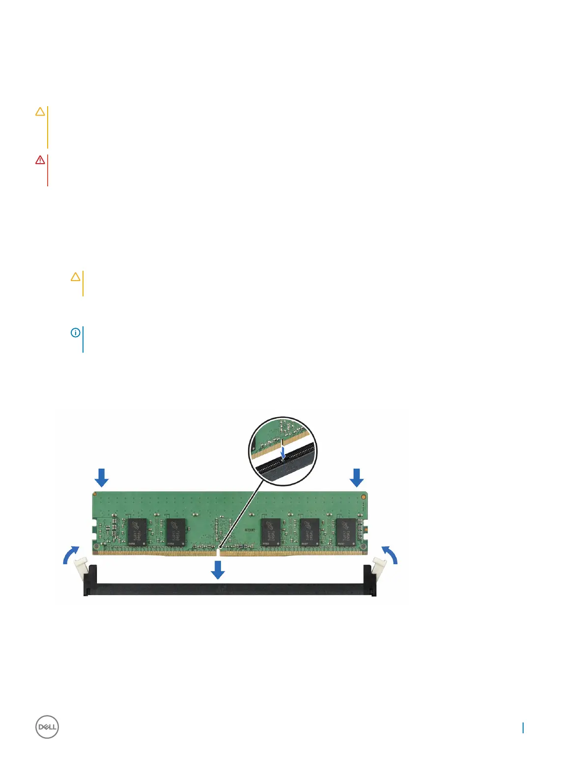 CAUTION: Handle each memory module only by the card edges, ensuring not to touch the middle of the memory