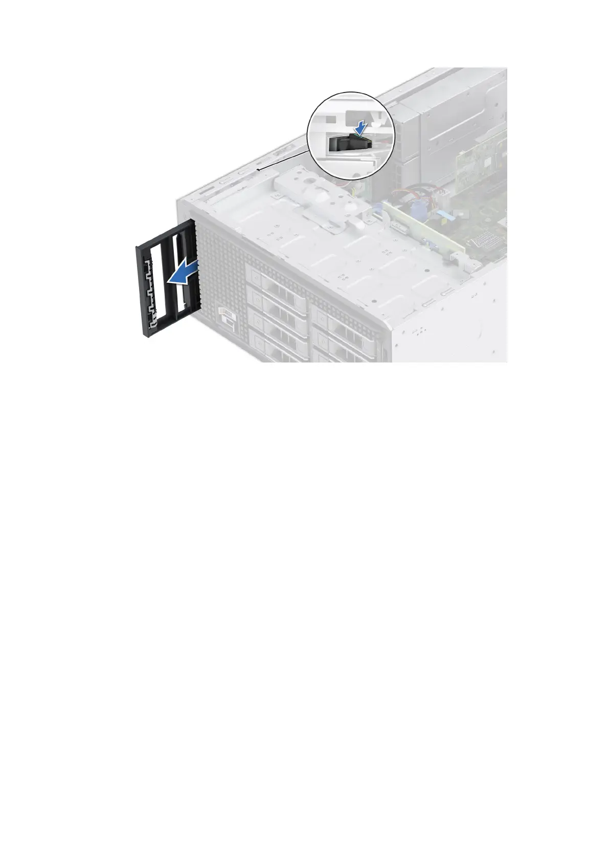 Figure 34. Removing the optical drive blank from the optical drive cage