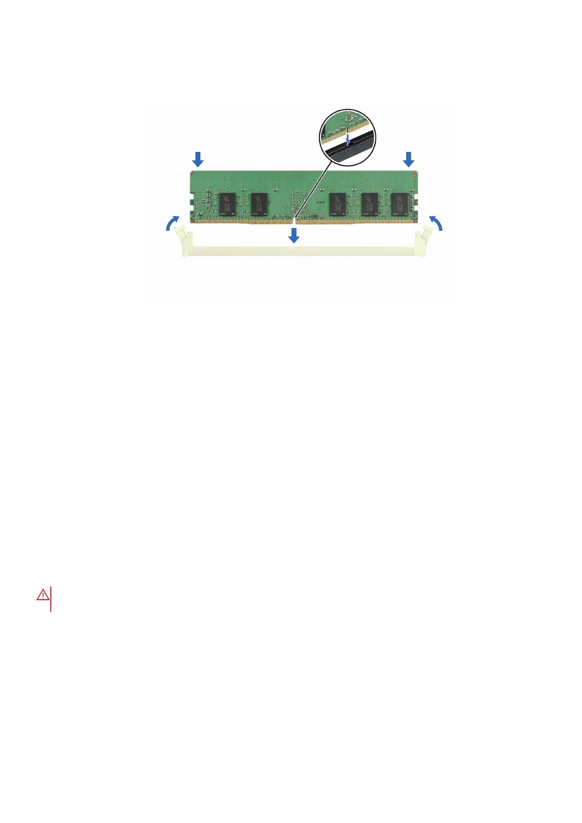 3. Press the memory module with your thumbs until the ejectors firmly click into place. When the memory module is properly