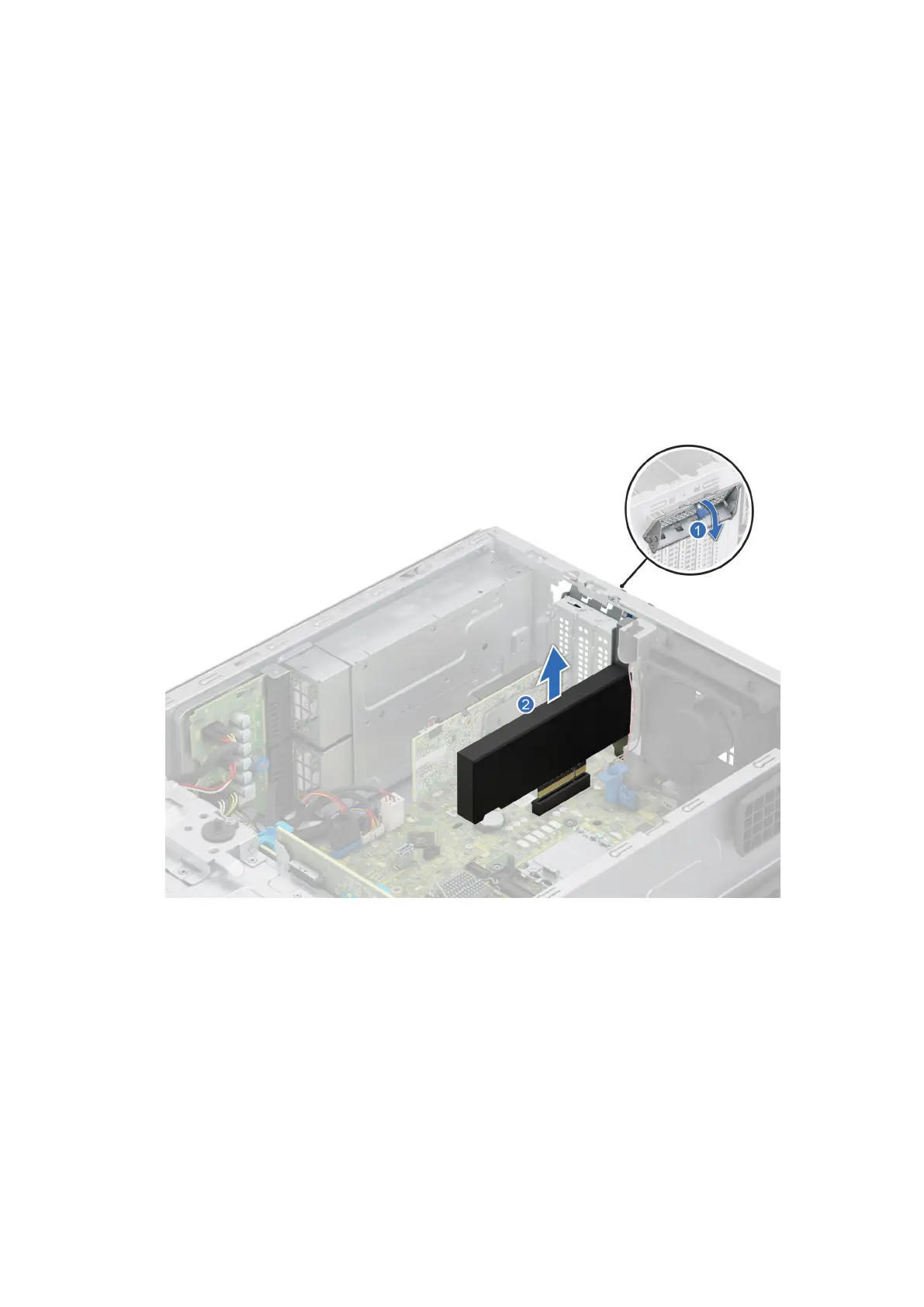 2. Hold the GPU by the edges, and pull the card up to remove it from the expansion card connector on the system board.