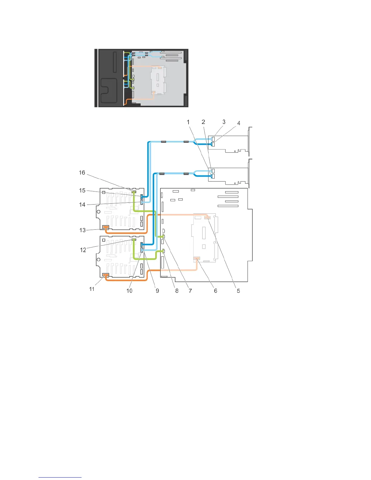 Figure 51. Cabling—2.5 Inch (x32) SAS/SATA Backplane With Two PERC Cards
