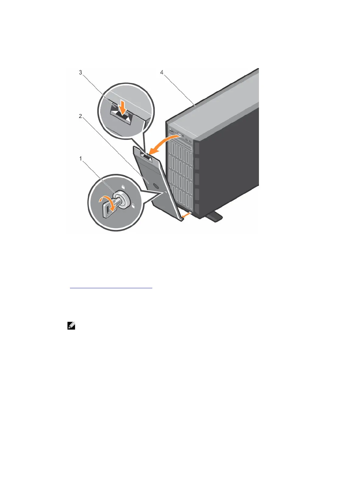 4. Remove the bezel by unhooking the bezel tabs from the slots at the bottom of the system.