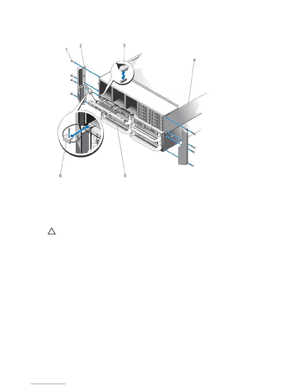 2. Attach the screws to secure the mounting ears to the chassis.