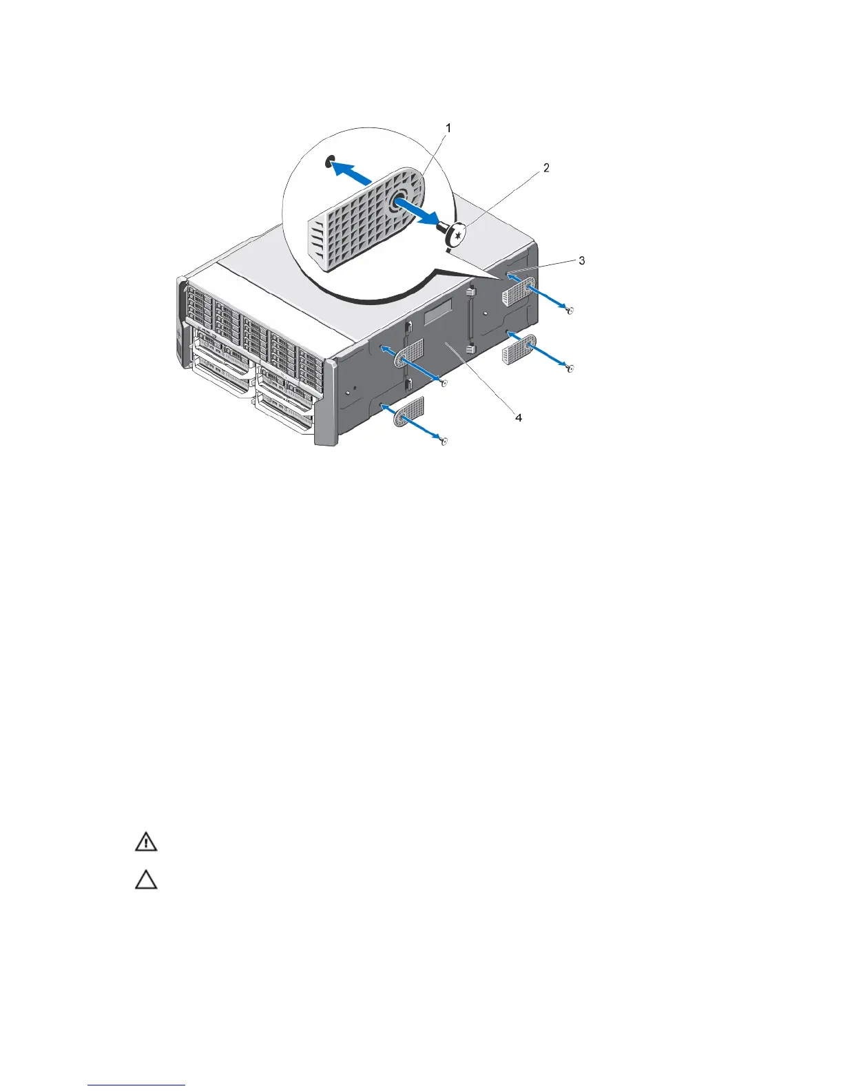 4. If removed, reinstall the hard drives, server modules, power supplies, and front bezel.