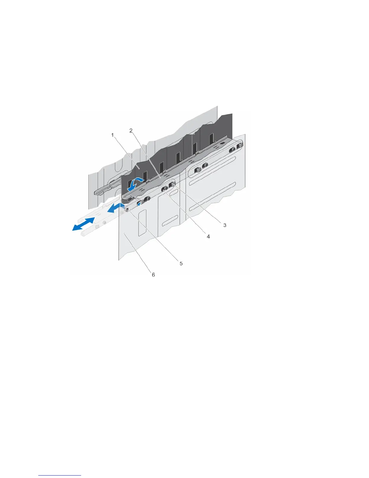 3. tabs on the server module partition 4. slots on the inner chassis wall