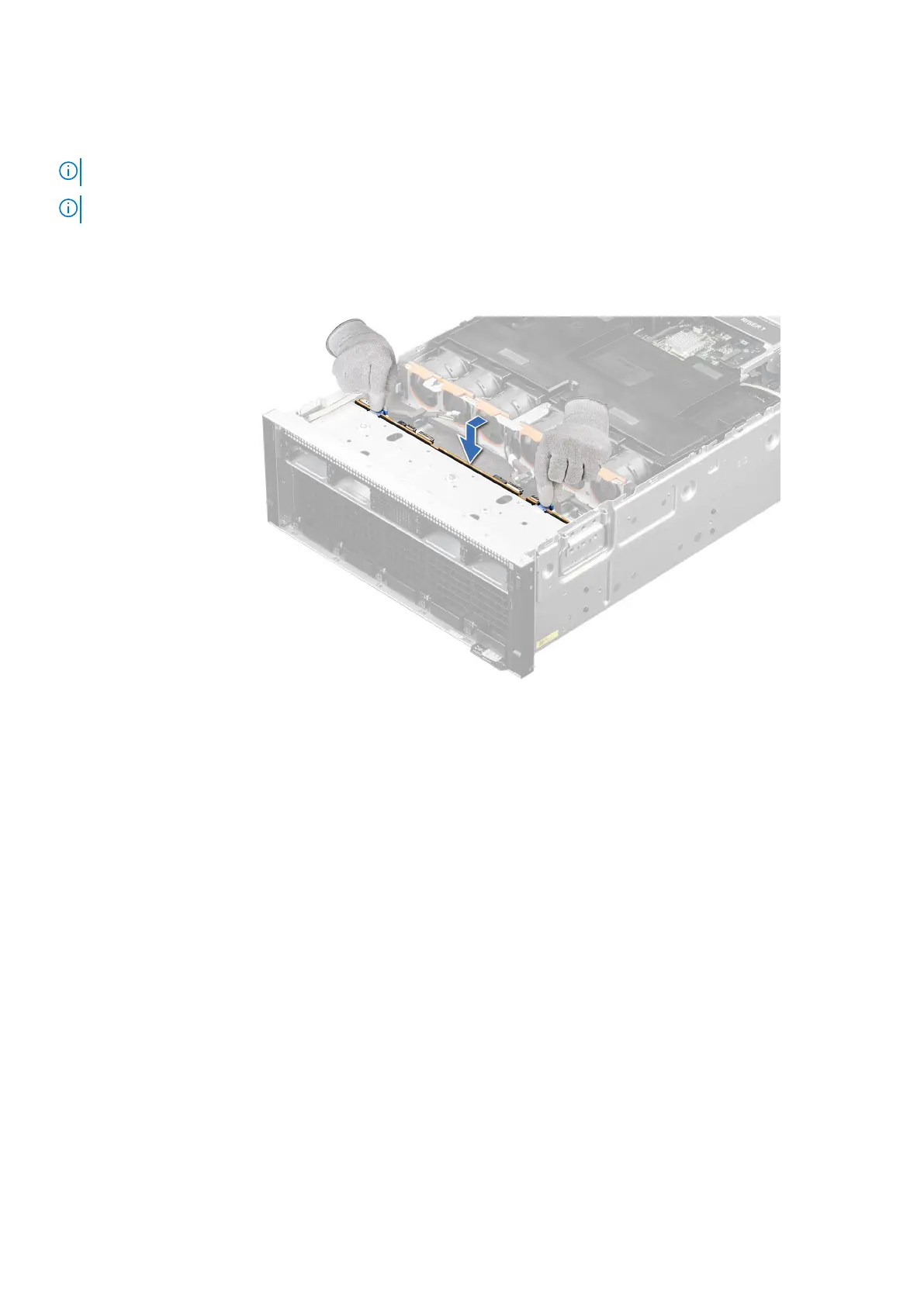 2. Slide the drive backplane into the guides and lower the backplane until the blue release tab clicks into place.