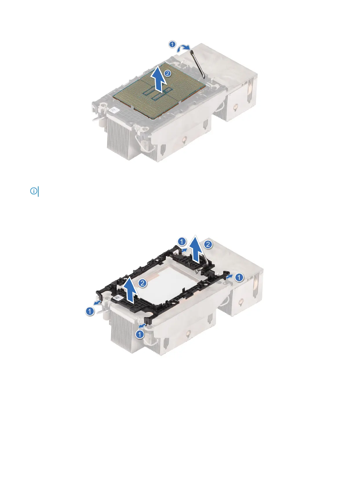 6. After all the corners are released from the heat sink, lift the retaining clip from the pin 1 corner of the heat sink.