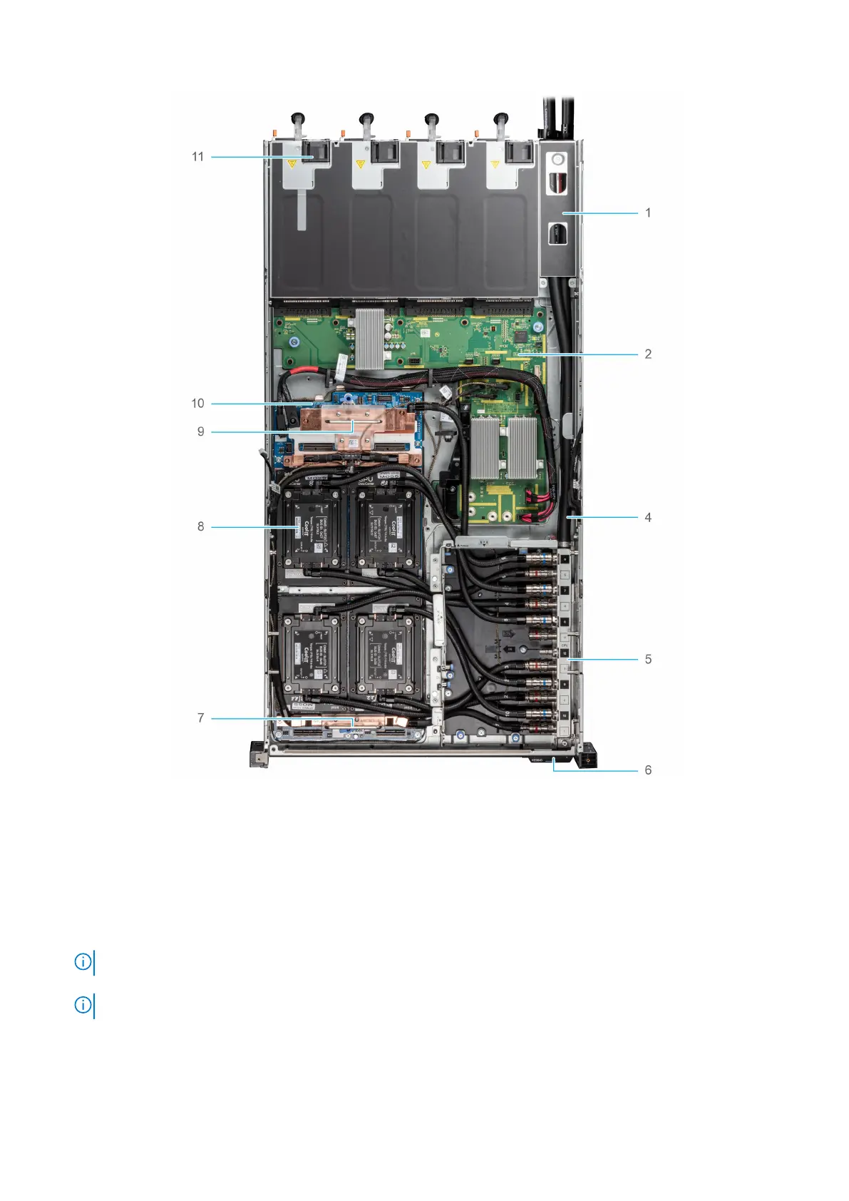 Figure 4. Bottom layer of the XE9640 system with Intel GPUs - inside the system