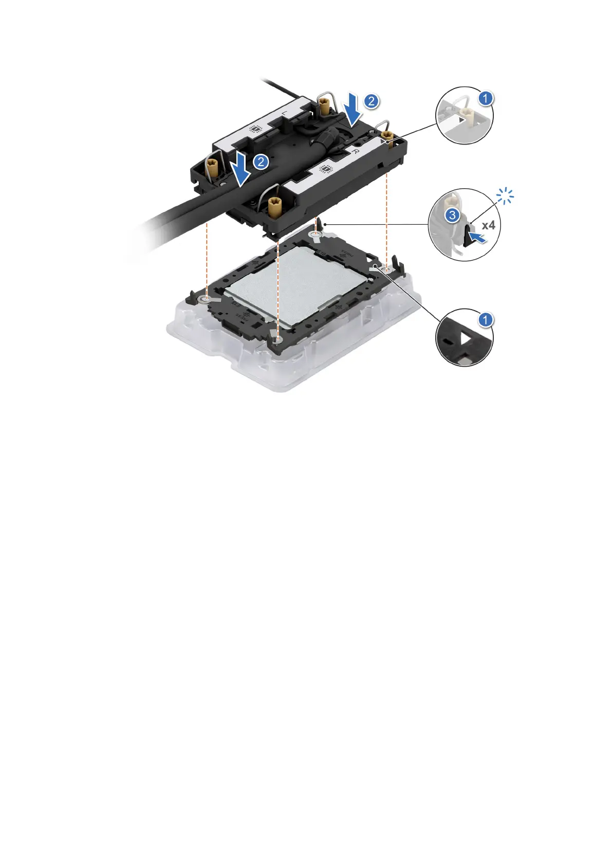 2. Place the module on the processor slot and set all the anti-tilt wires to locked position (outward position).