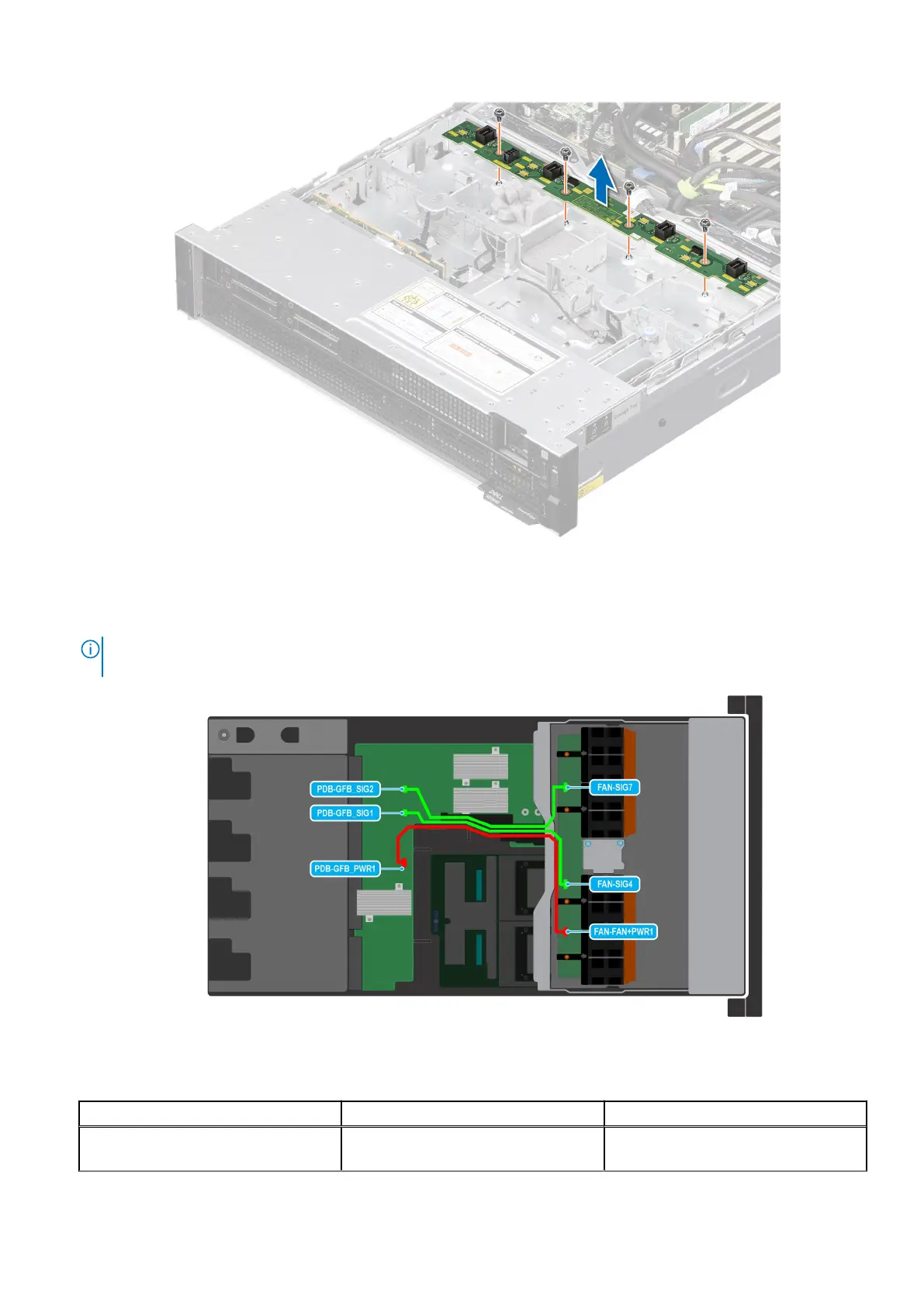 This step is optional. Disconnect the fan board cables from the PDB of the bottom layer unless it is required to