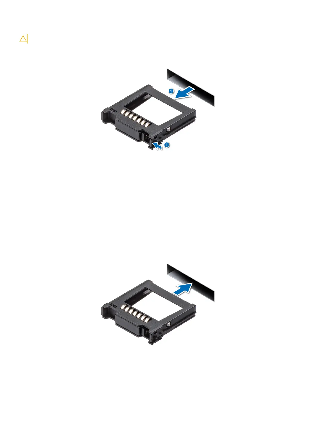 Slide the drive blank into the drive slot until the release button clicks into place.