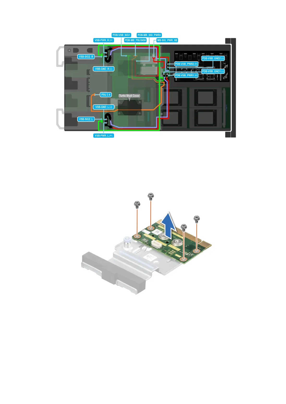 connected on to the PDB2 on the storage tray. Remove the system board tray. Disconnect the VSB cables from the PDB on