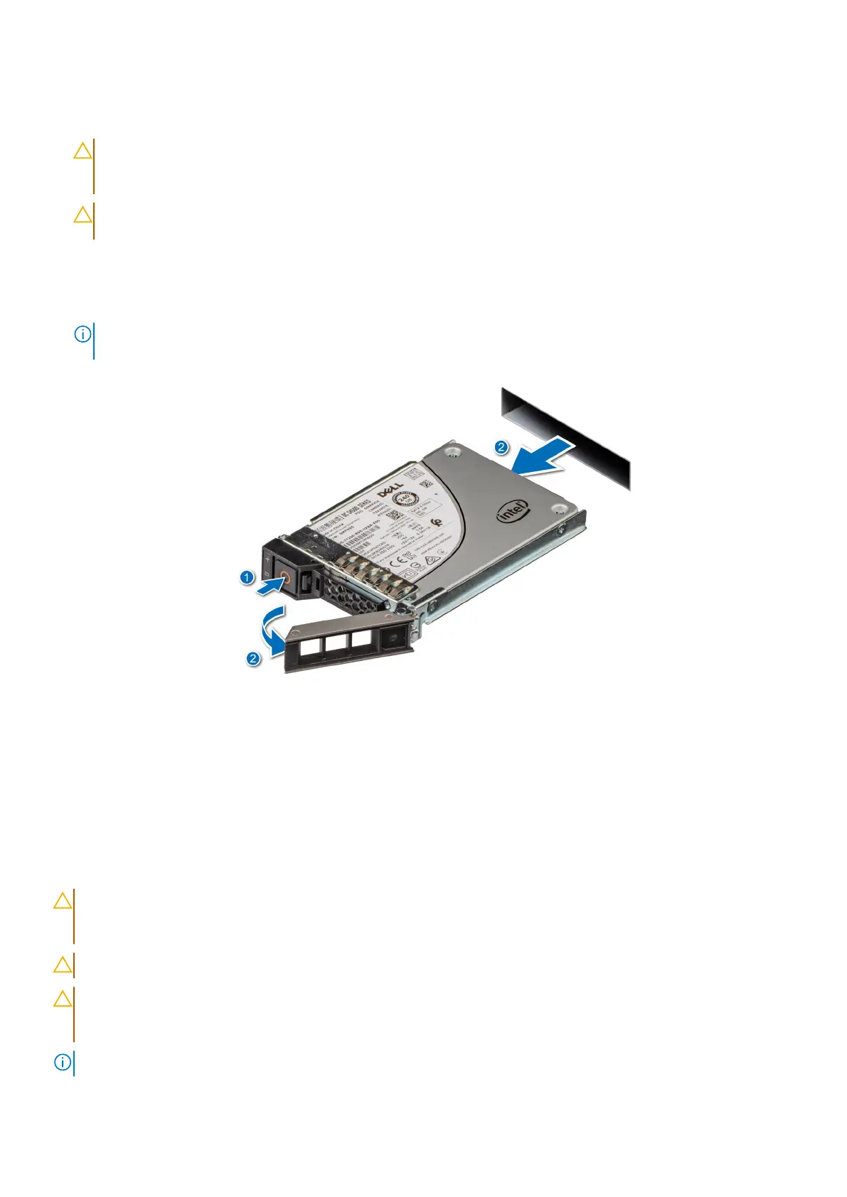CAUTION: When installing a drive, ensure that the adjacent drives are fully installed. Inserting a drive carrier