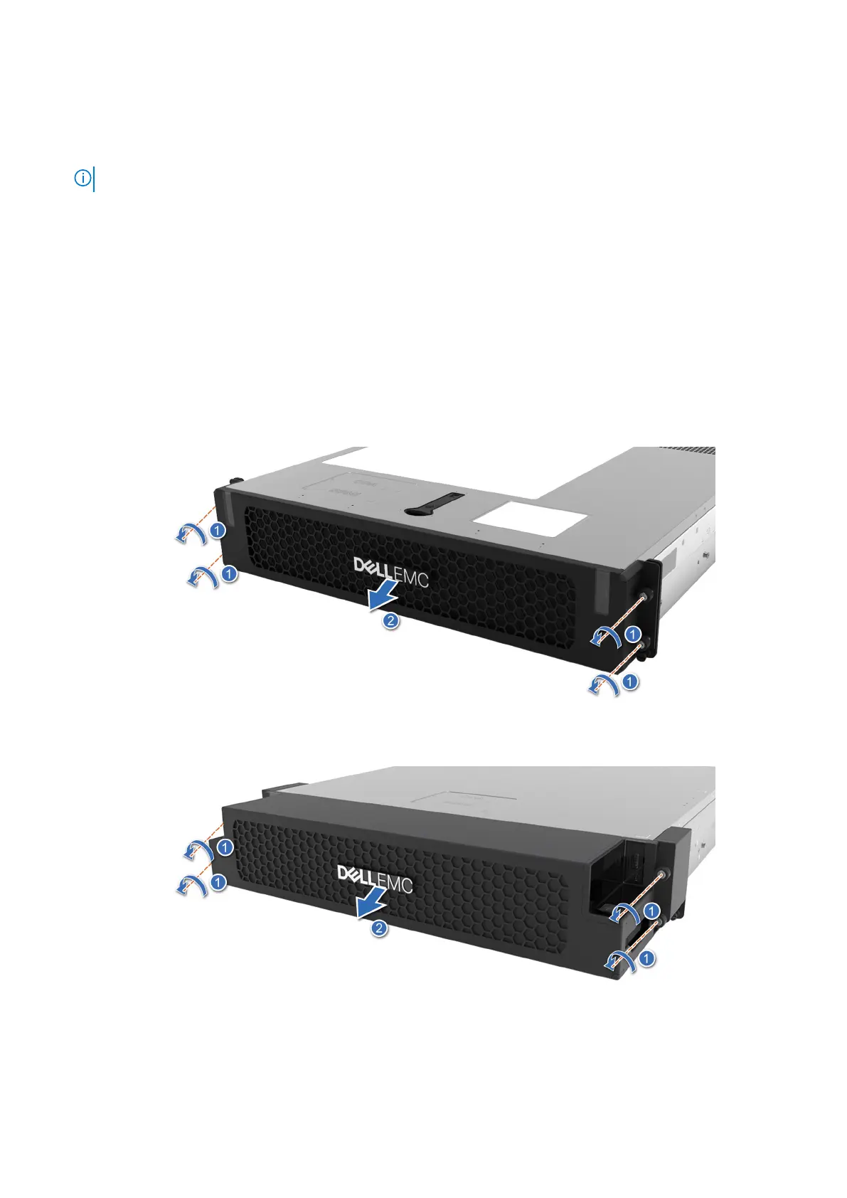 1. Remove the screws that secure the bezel on both sides of the system rack ears.