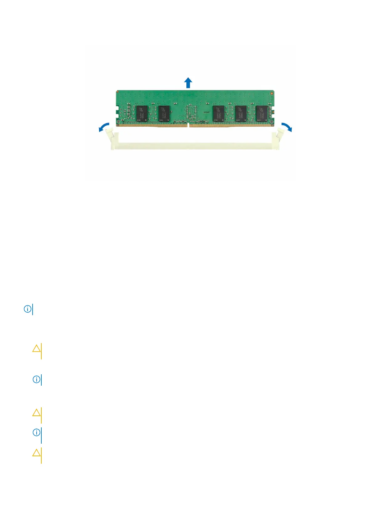 CAUTION: Do not apply pressure at the center of the memory module; apply pressure at both ends of the