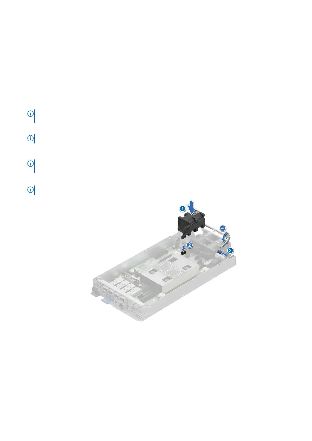 4. Pull the blue latch on the side of the fan module and lift the fan handle