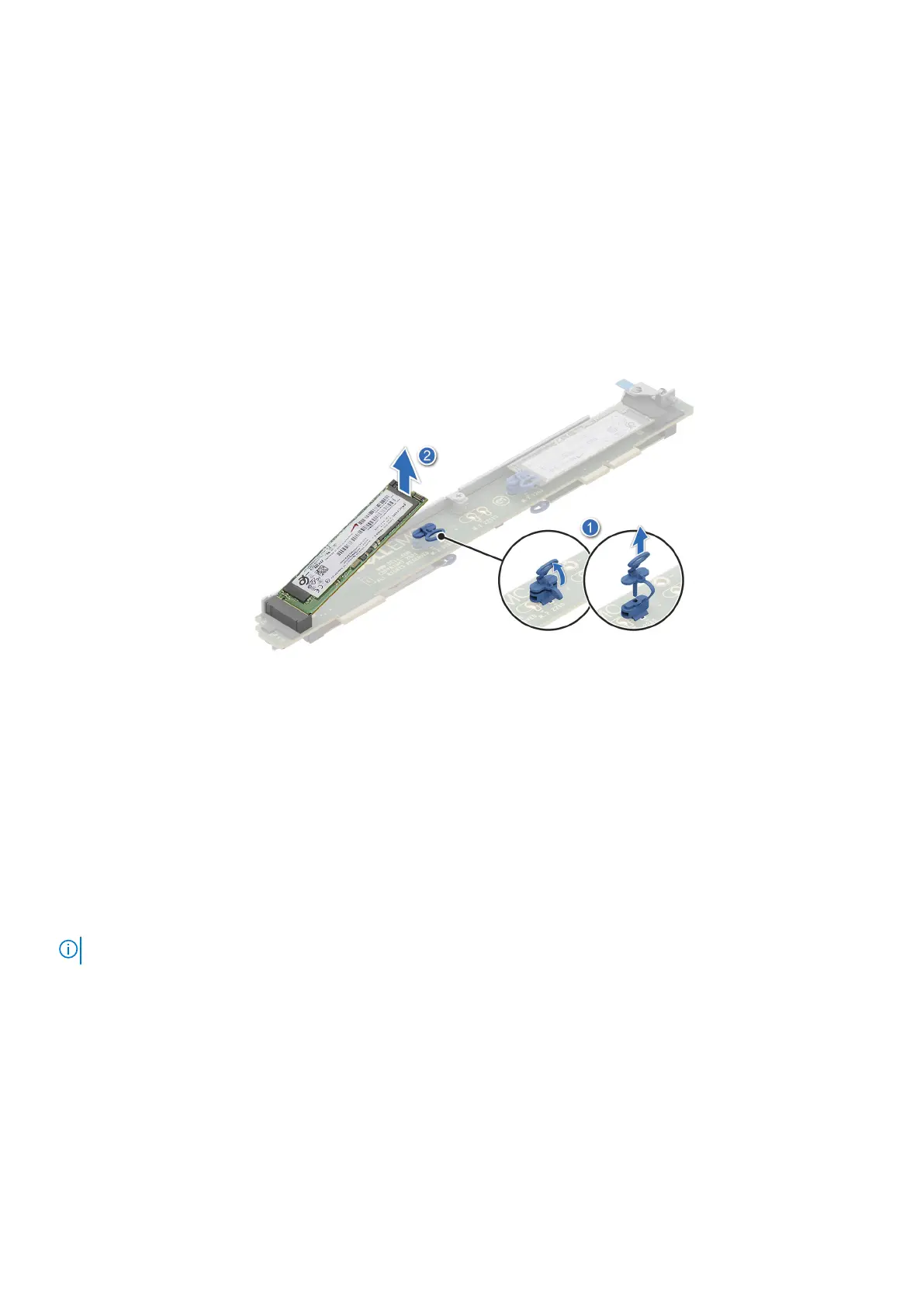 NOTE: The position of the blue latch used for the M.2 SSD 2280 and M.2 SSD 22110 are different.