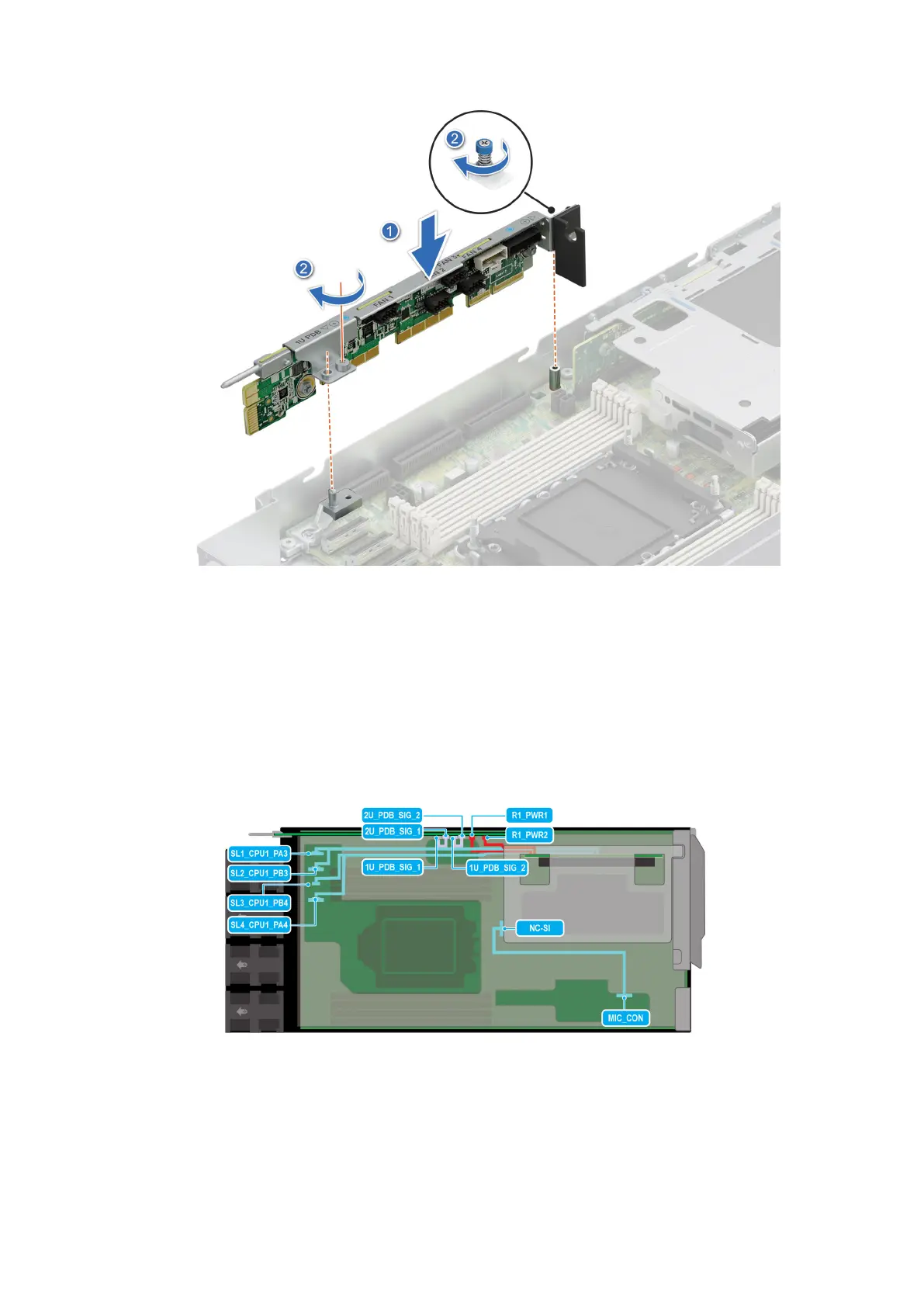 1. Connect the cables connected from cooling fans and system board to the 1U power distribution board (PDB).