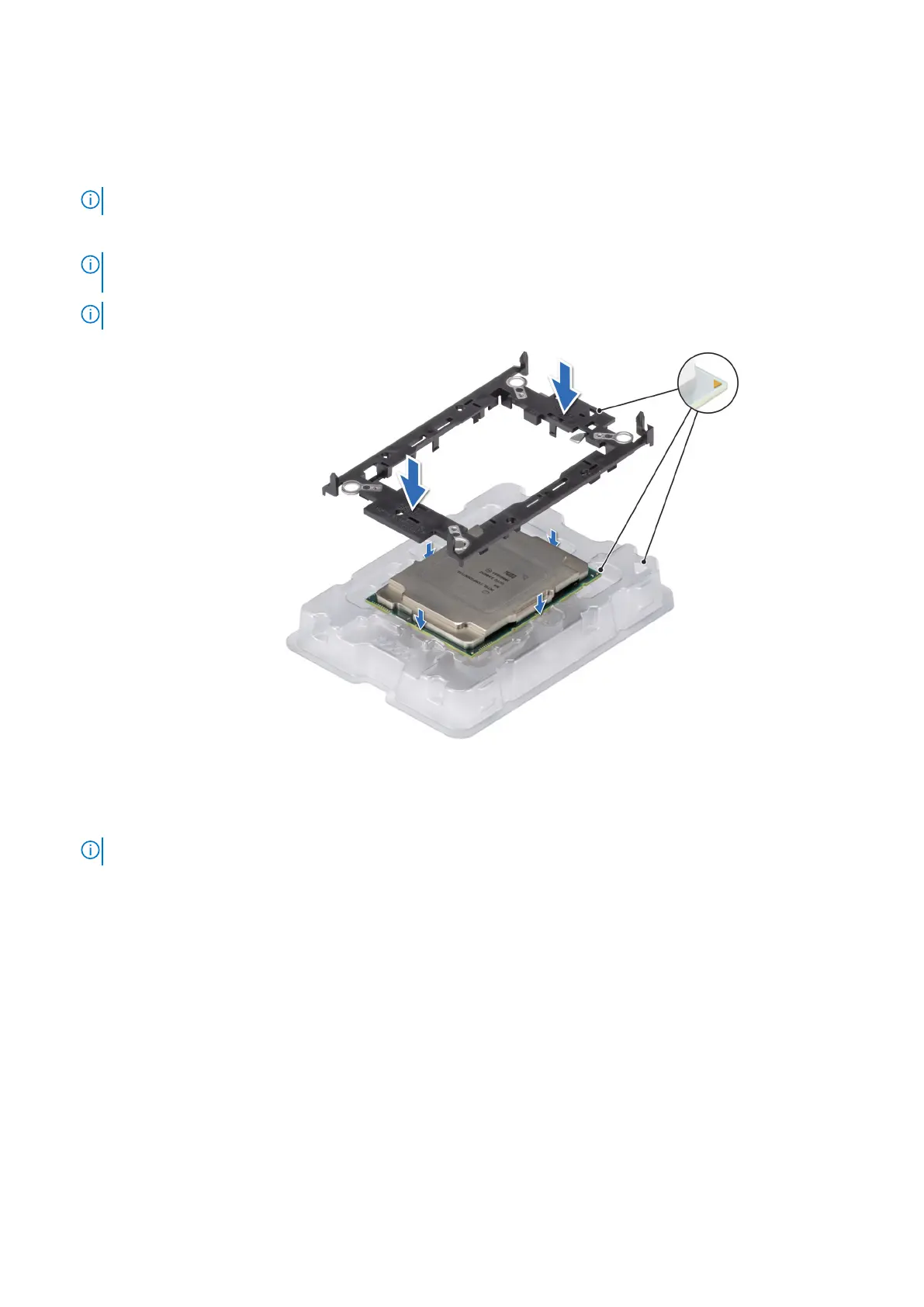 NOTE: Ensure the pin 1 indicator on the retaining clip is aligned with the pin 1 indicator on the processor before placing